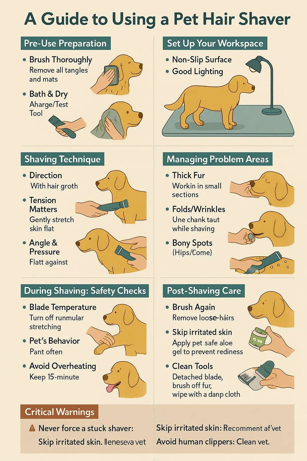 Elakkan terlalu panas: Cukur dalam selang 15 minit; Berikan alat (dan haiwan kesayangan).
