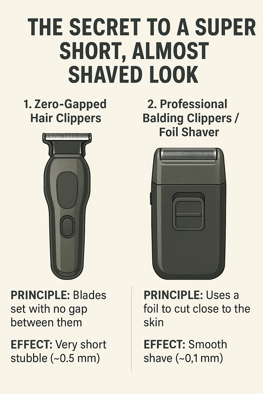Sekiranya anda menginginkan hasil yang lebih pendek daripada gunting sifar, kemasan lancar seperti mencukur segar dengan pisau cukur, maka anda memerlukan alat yang berbeza, yang biasanya kelihatan seperti pencukur elektrik yang digunakan untuk janggut lelaki.